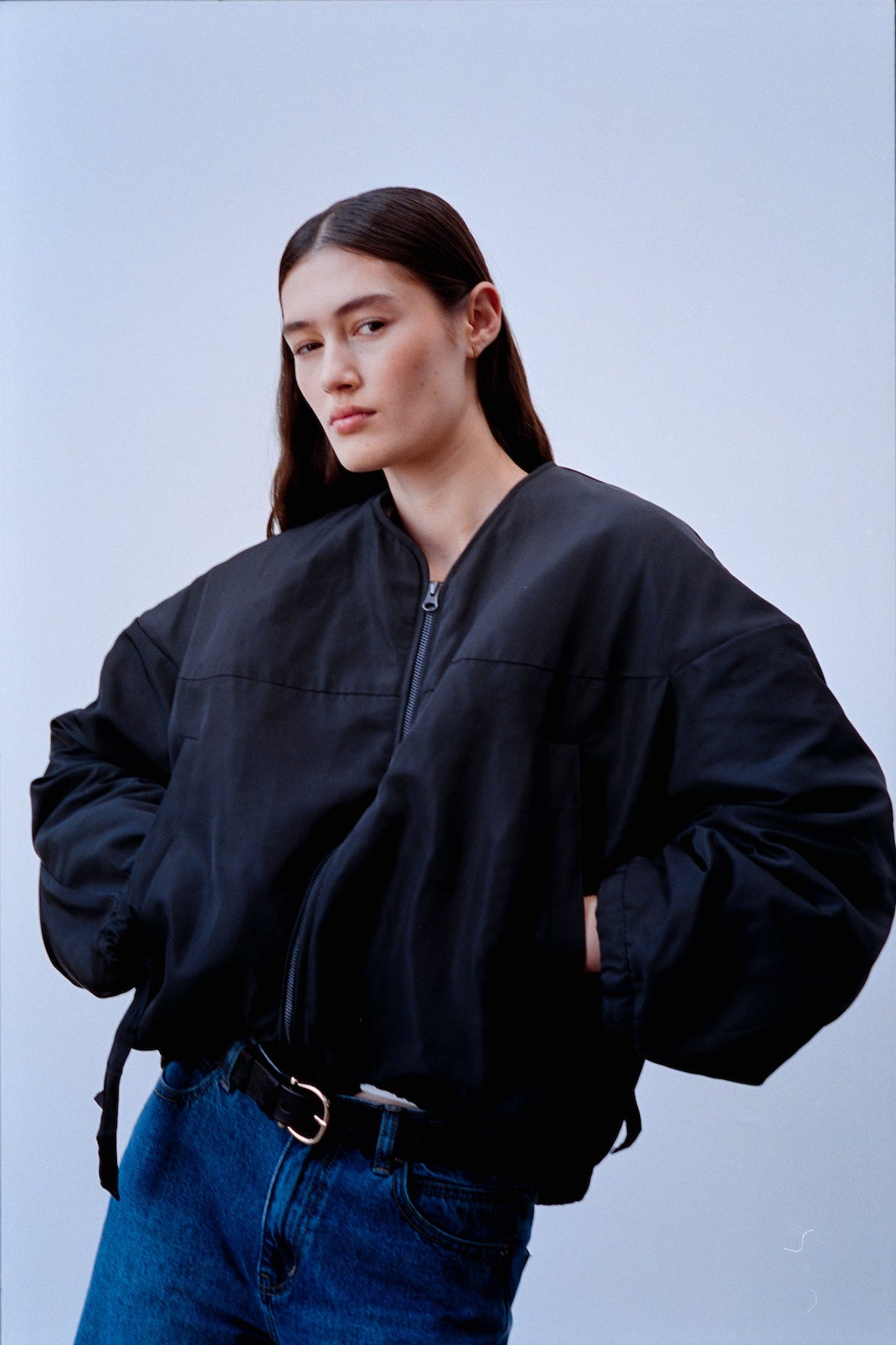 The black color scheme makes this jacket particularly versatile – it can be effortlessly integrated into minimalist outfits and works equally well as a calm contrast to softer materials and light tones.